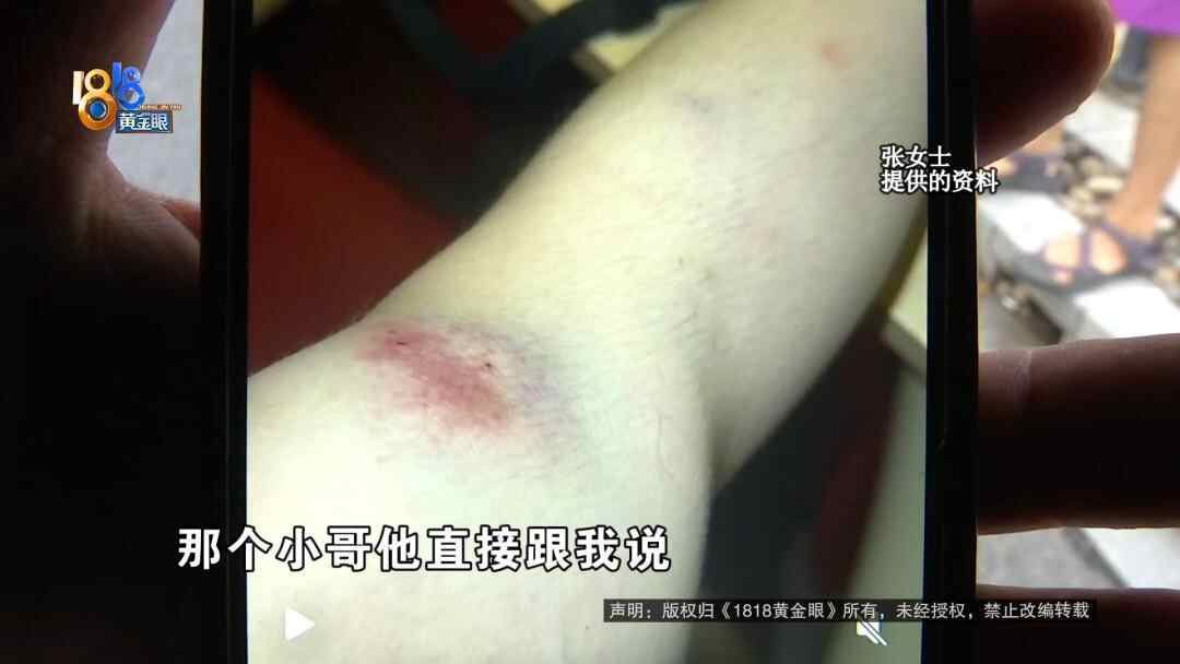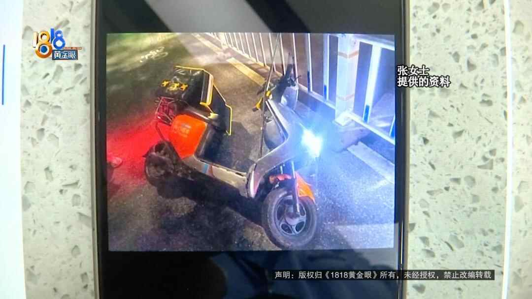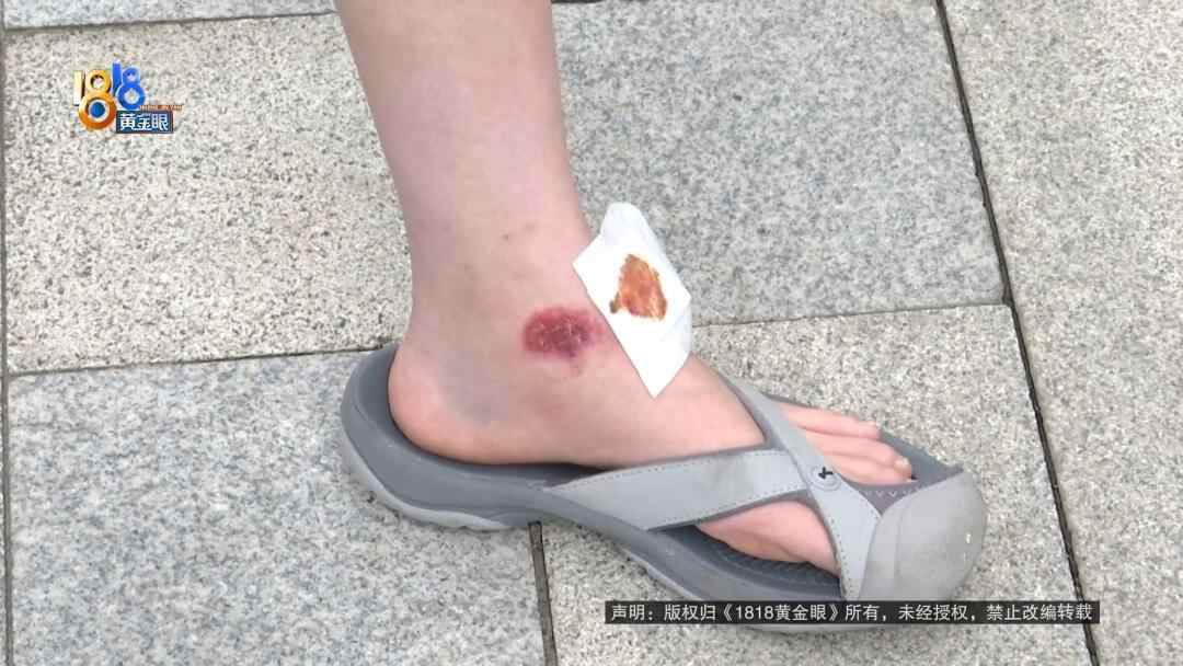 张女士:他撞的是我这一侧,当场我脚踝就很肿,我就在地上坐着,坐了五分钟。我就不敢动我的脚,因为我怕骨折了,那个小哥他直接跟我说,他完全没有看到我,所以他根本就没有减速。