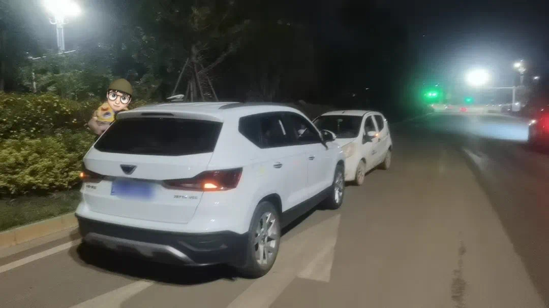 接到报警后,大队立即派警力前往处置。民警到达现场后,发现一辆白色老年代步车和一辆白色小型客车在车道内对峙。