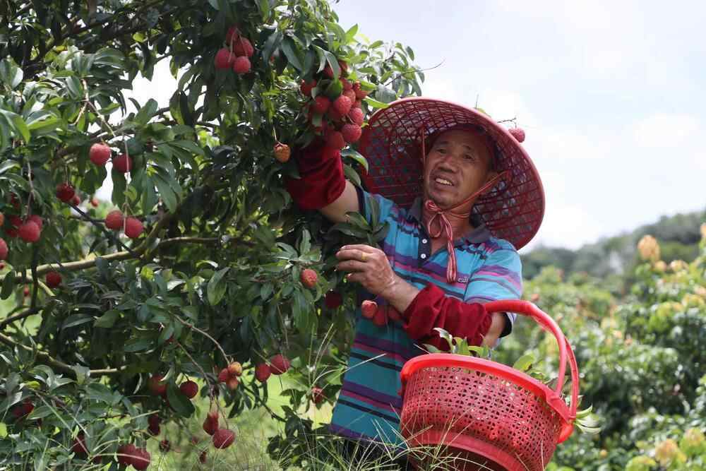 “今天周末,我们一家来摘荔枝,你看,果实硕大饱满,甜度也很高。”游客钟女士笑着告诉记者,一旁的孩子像发现了宝藏,高举着刚采下的“红宝石”,迫不及待地与家人分享收获的快乐。
