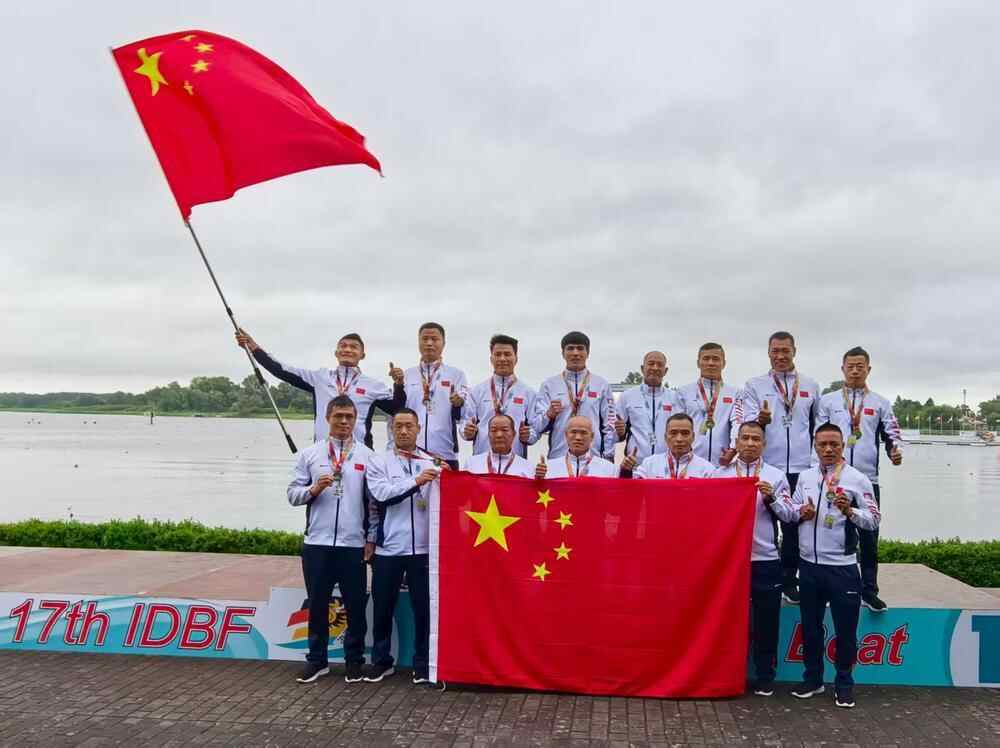 7月18日,在德国勃兰登堡哈维尔的比茨湖举行的第17届世界龙舟锦标赛上,广州白云人和龙舟队以49.86秒的优异成绩,在200米直道竞速12人龙舟老将A公开组项目中勇摘桂冠。