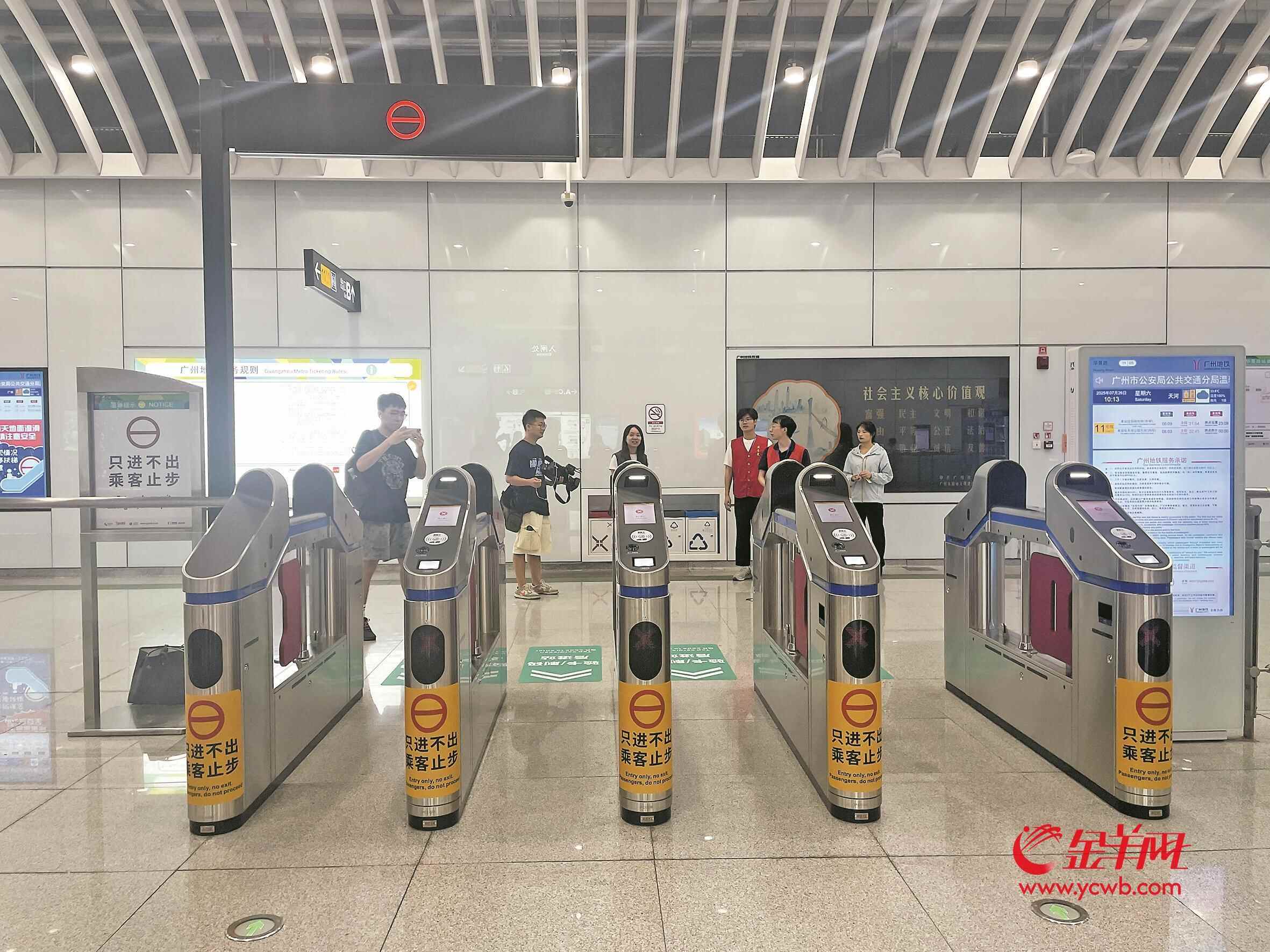 羊城晚报讯 记者严艺文摄影报道:26日起,广州地铁11号线华景路站试点实施“闸机常开门”模式。记者在试点首日现场走访发现,有老人“蒙查查”,也有乘客表示在高峰期会提高通行效率。据统计,华景路站“闸机常开门”试点后,单组闸机每15分钟的通过能力由原来300人次提升至450人次左右。