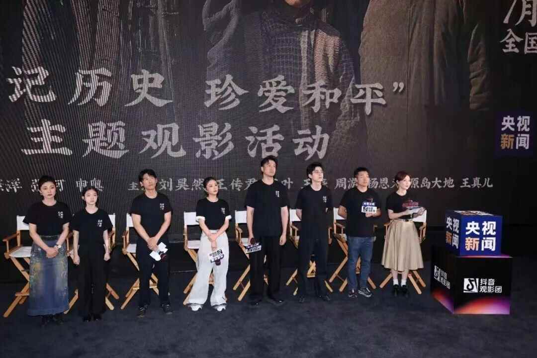 影片导演申奥,演员刘昊然、王传君、高叶、王骁、杨恩又、王真儿来到央视新闻观影团现场,与观众进行互动。二战相册捐赠者埃文·凯尔,也受邀来到活动现场,共同观影交流。