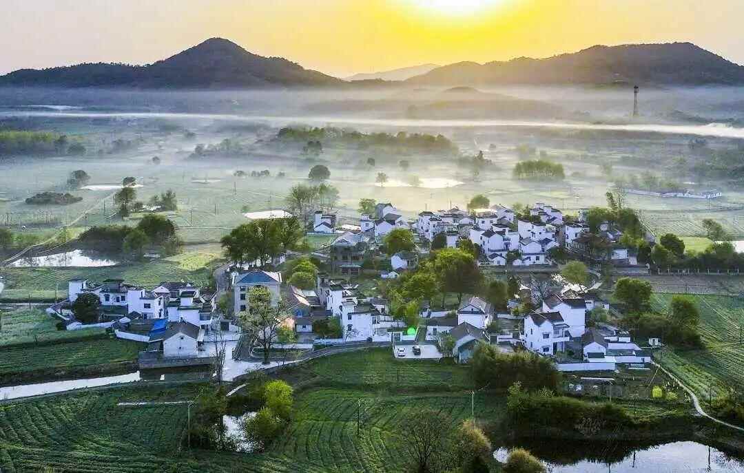 4月8日,安徽省芜湖市孙村镇水口村,清晨薄雾环绕,青山如黛,民居错落有致。邢朝明摄(中经视觉)