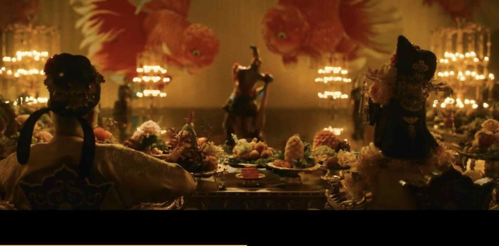 杨贵妃的塑造,无疑是导演对历史的一次勇敢反驳。大鹏将这位历史美人从“一骑红尘妃子笑”的祸水叙事中解放出来——在影片中,她甚至未曾真正品尝过一颗果实。对此,大鹏曾在一次采访中承认,他曾设想杨贵妃与荔枝的关系——或许,她本人连吃新鲜荔枝的念头都没有产生过。与此同时,半边脸也成为片中至高无上权力的符号载体——那无数牺牲所进行的献祭,其对象甚至连脸都“懒得”露一下。