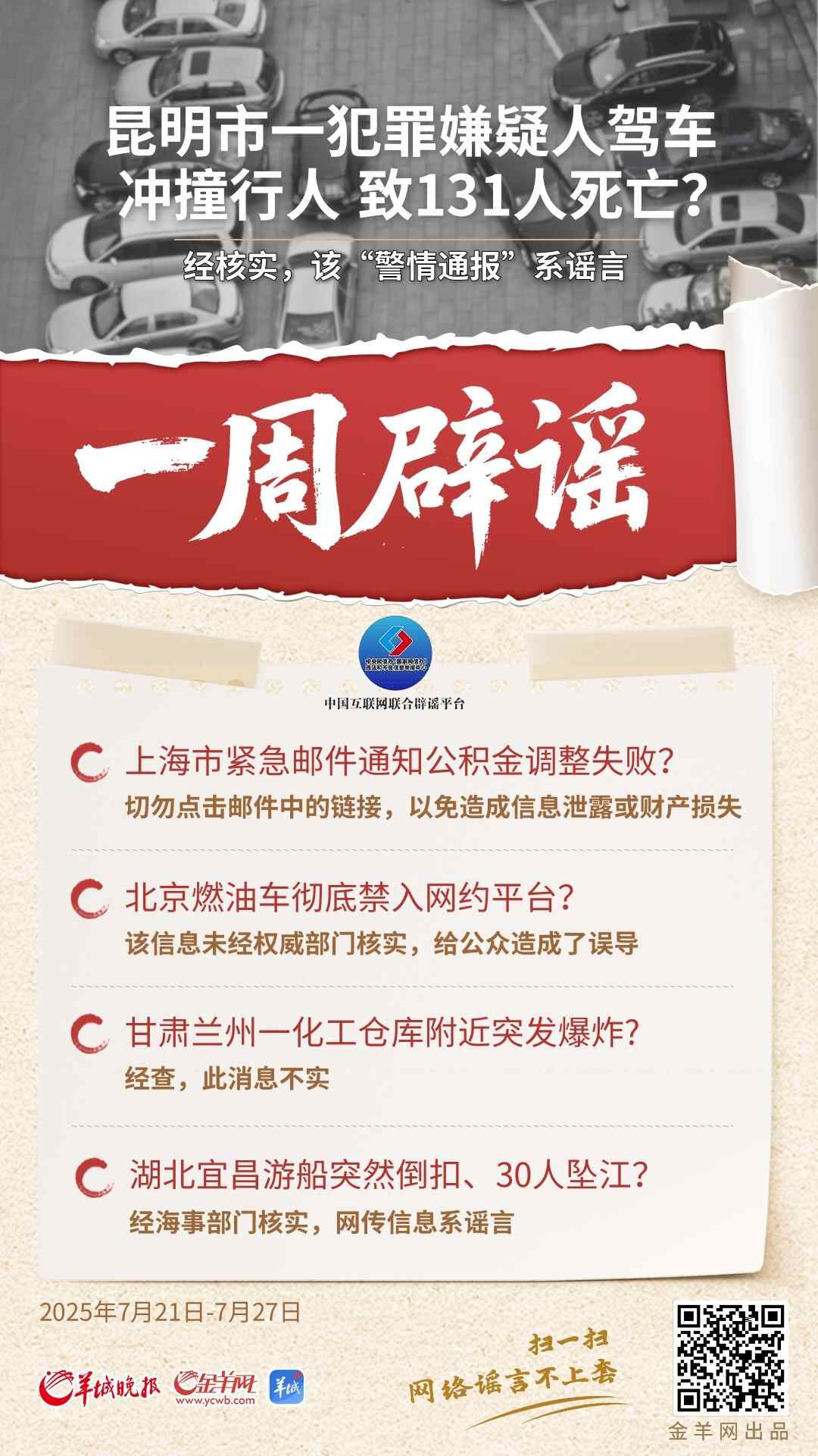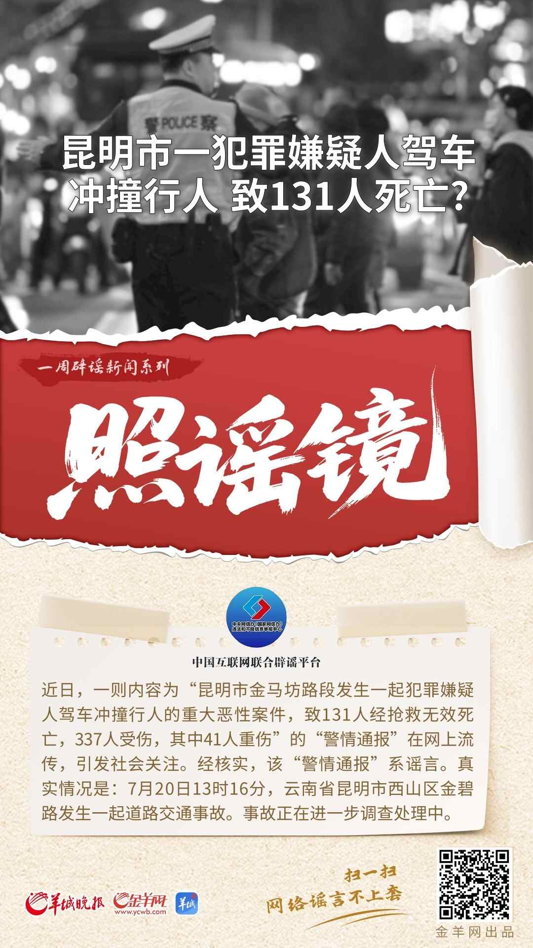 一周辟谣 | 昆明市一犯罪嫌疑人驾车冲撞行人 致131人死亡?