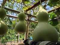 瓠瓜的果实形态多样,呈长棒形、长筒形、短筒形、扁圆形或束腰形,嫩瓜果皮为淡绿色,果肉白色柔嫩。我们主要是吃它的嫩瓜,而成熟的瓠瓜不适合食用,一般用来做容器或饰品,比如盛水的葫芦瓢、做乐器、装酒的葫芦容器或玩具等。