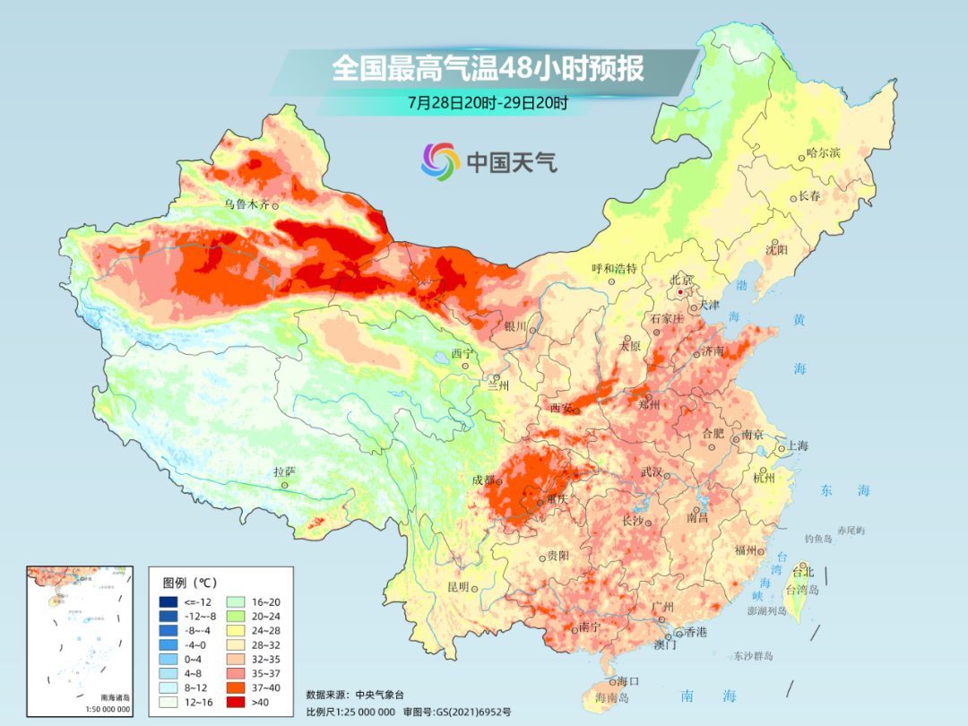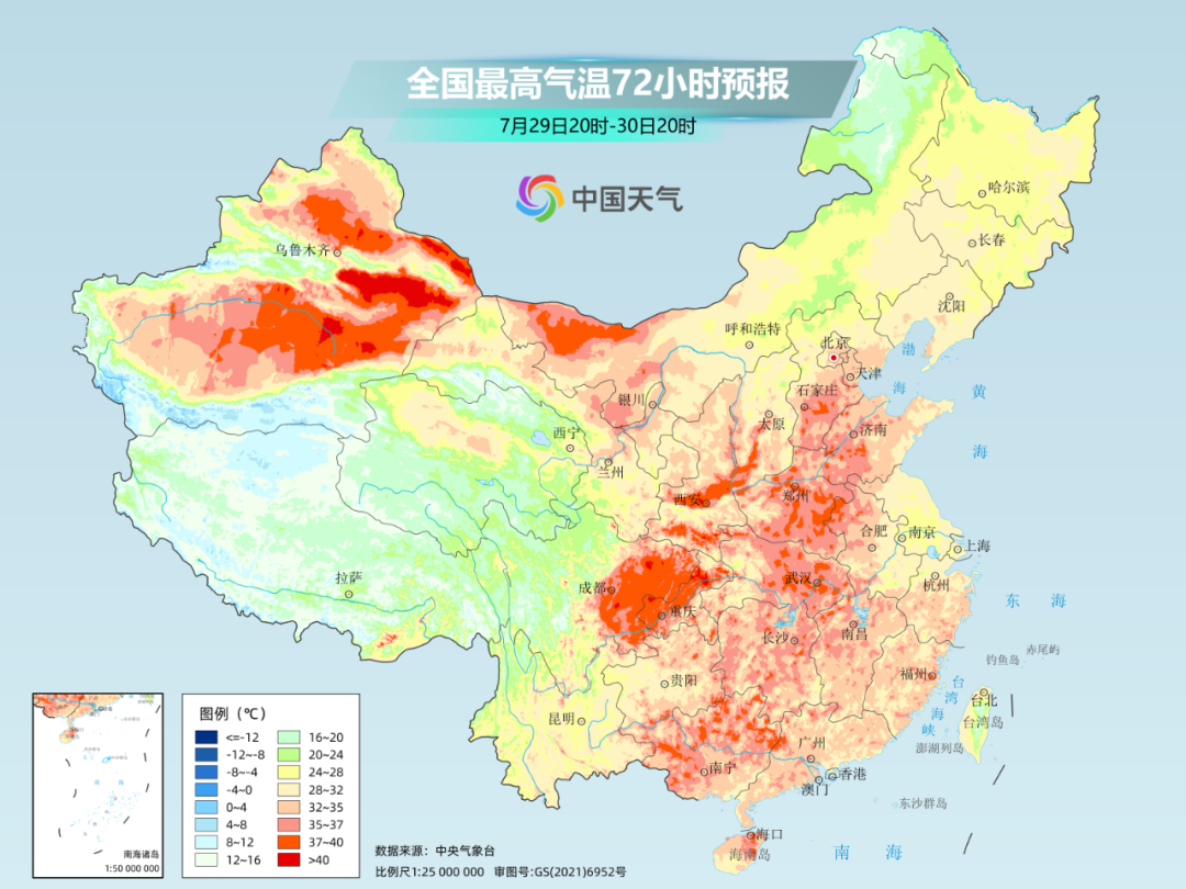 在雨带之外,高温天气依旧盛行。未来几天,华北南部、黄淮、江汉、四川盆地、重庆以及陕西关中等地还将有持续高温。其中,陕西关中、四川东部、重庆等地最高气温可达40℃左右。8月3日起,高温范围还将再度扩大,高温强度也会加码。
