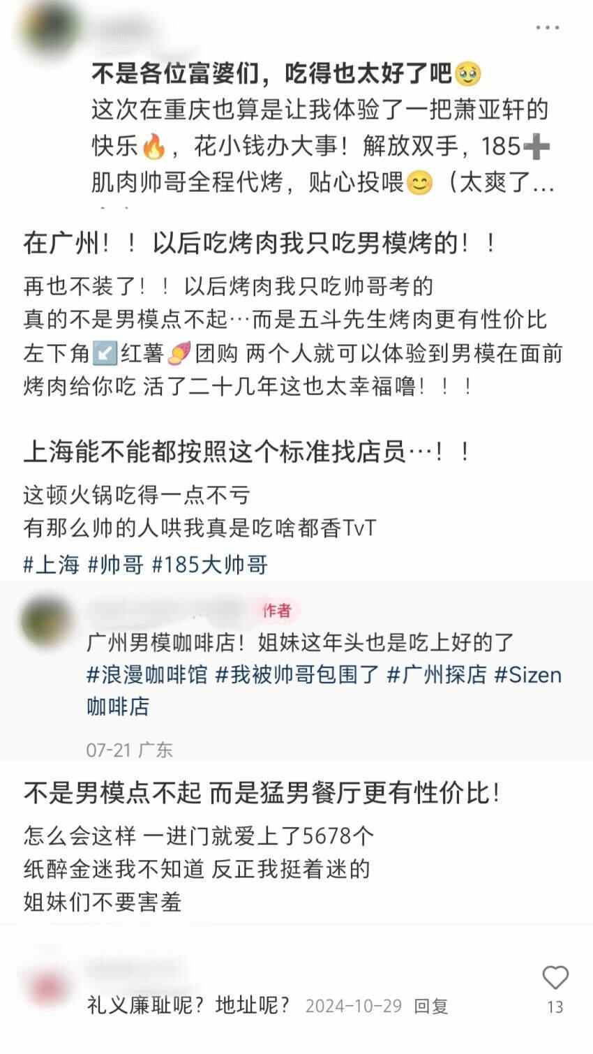△网友们对“男模餐厅”的看法,图片来源:小红书截图