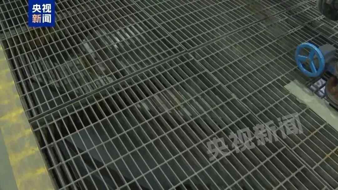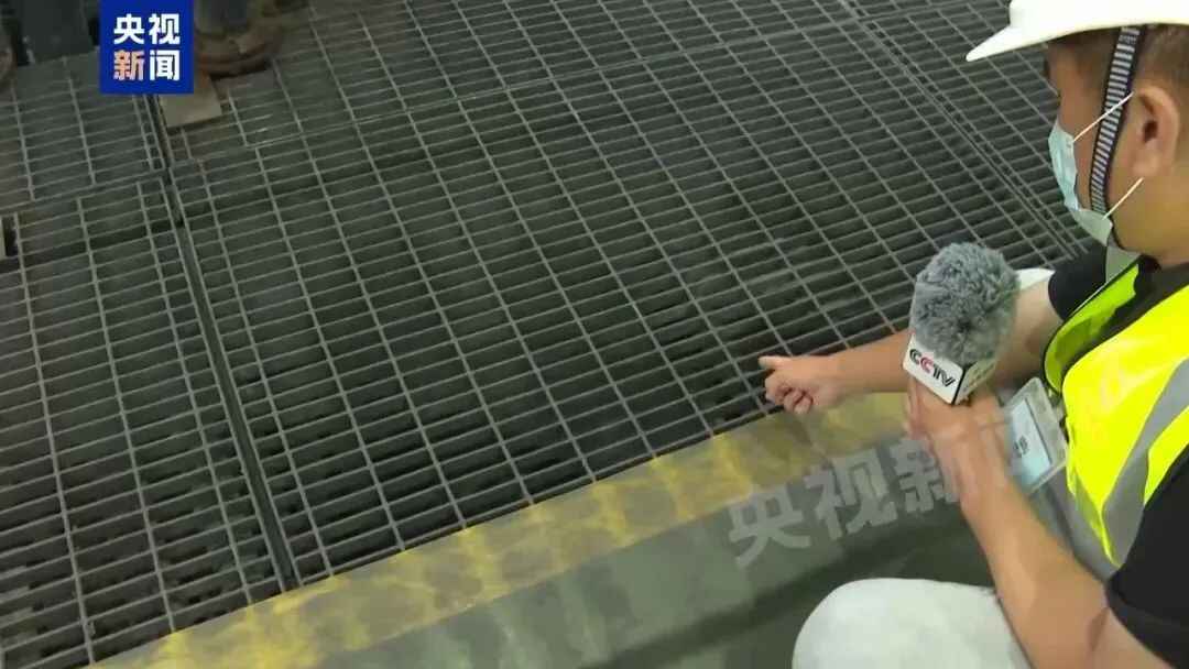 记者在现场看到,格栅板宽1米左右,长度应该是在1米5左右,每一个格栅板中间会有一个这样的横梁,两边都会担在两侧的横梁上。