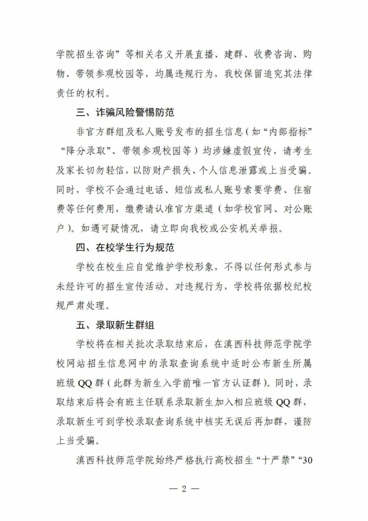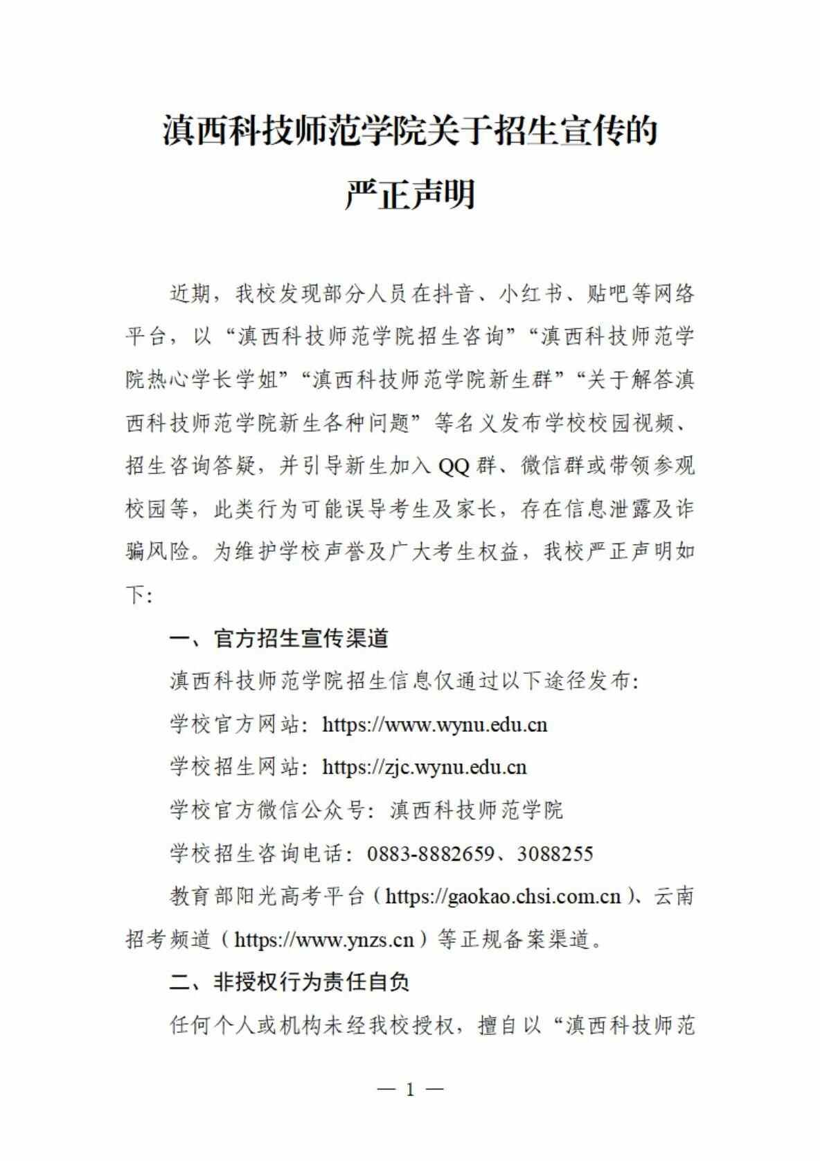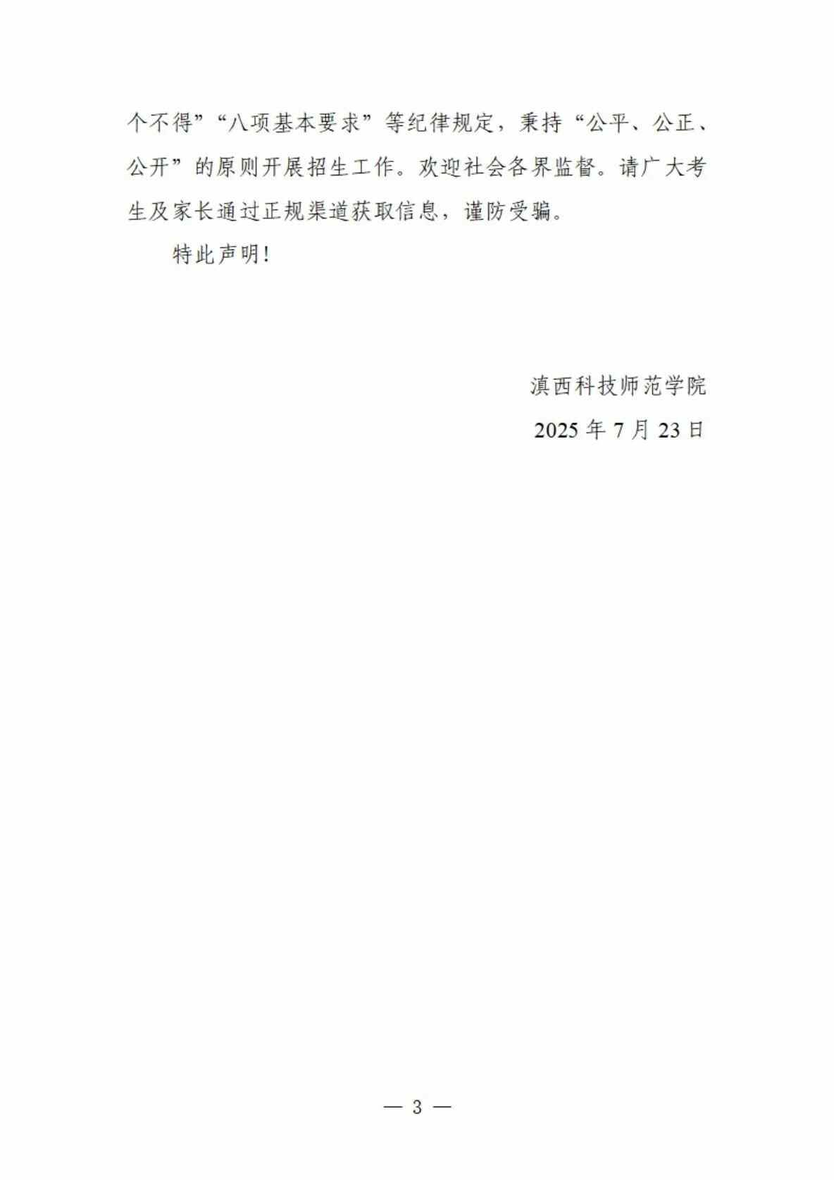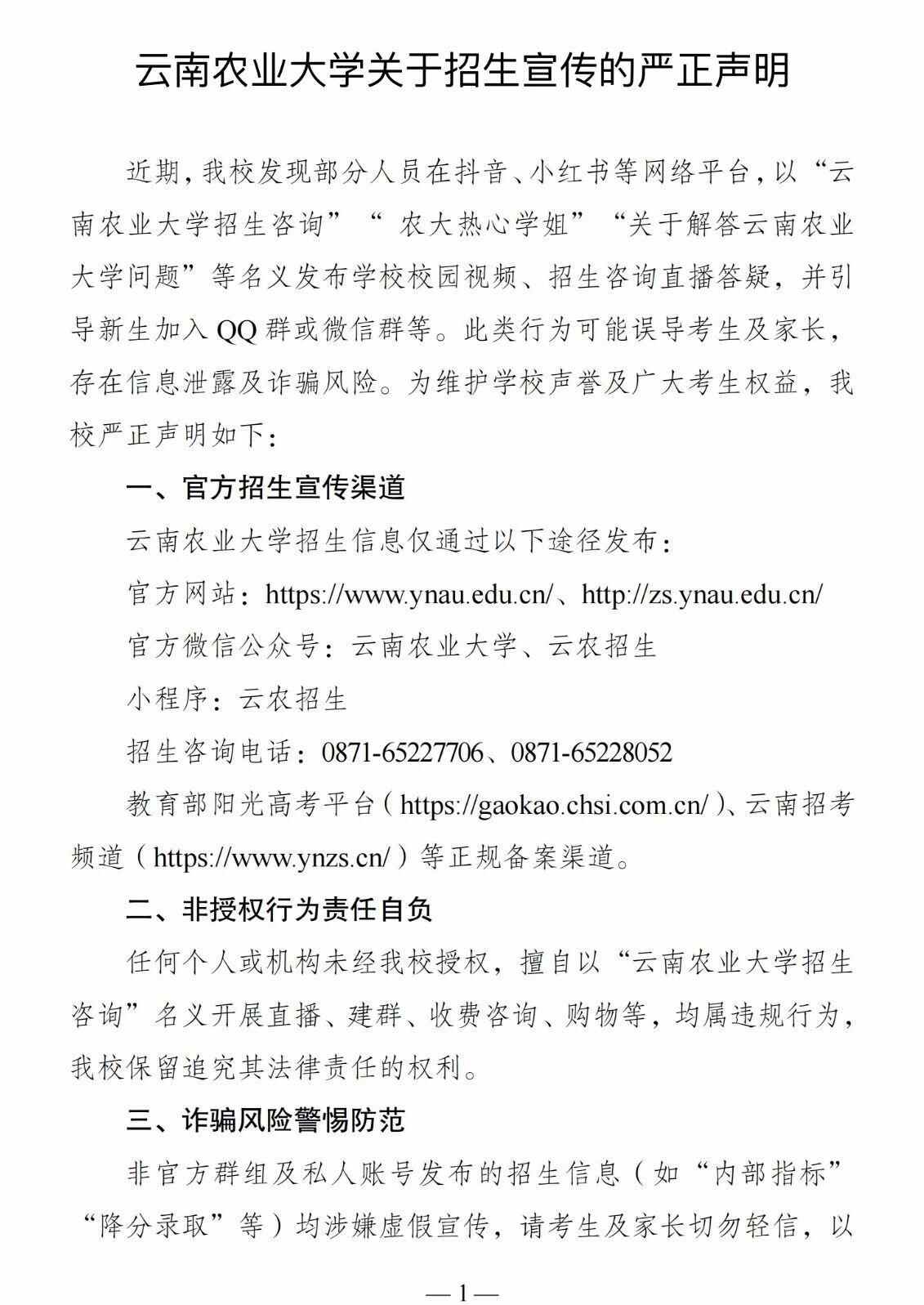 目前,云南省2025普通高校招生录取工作正在进行中。7月23日,云南农业大学、滇西科技师范学院发布声明称,近期有部分人员在抖音、小红书、贴吧等网络平台传播非官方招生答疑信息,此类行为可能误导考生及家长,存在信息泄露及诈骗风险。为此提醒考生及家长通过正规渠道获取信息,谨防受骗。