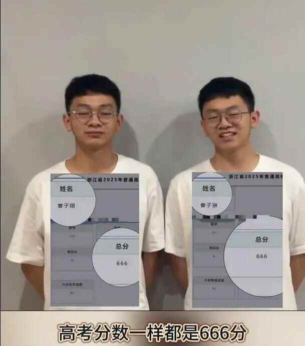 近日,浙江杭州一对双胞胎兄弟曾子翊、曾子翀以666分的好成绩,被西安交通大学计算机科学与技术专业录取。兄弟俩都毕业于杭州学军中学,高考同步考出666分的佳绩,又是被同一所学校同一个专业录取,网友纷纷感叹两兄弟是“神同步”。