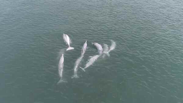在江门海域,有机会能看到碧波间跃动的中华白海豚群。据说每年5月到10月是观赏中华白海豚出没的最佳时段。站上观豚亭,等一群海豚悄然跃过。