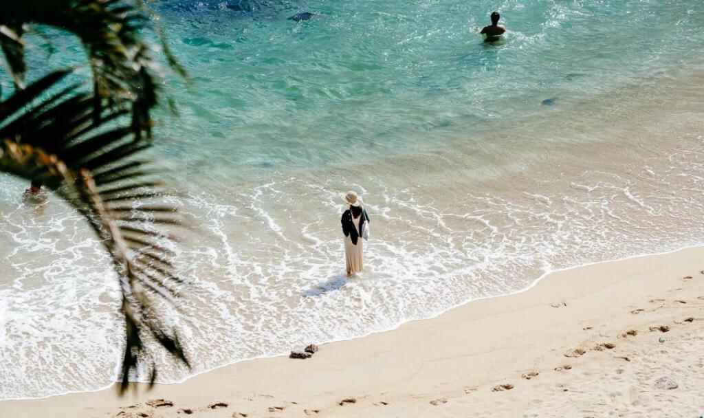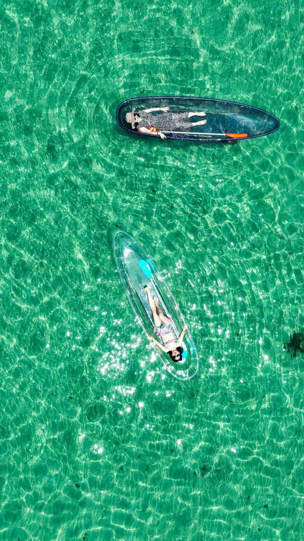 这里的海水呈现出梦幻般的"玻璃海"质感,蓝绿交织,清澈透亮。