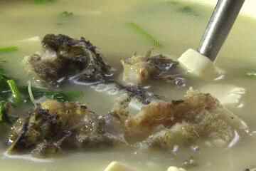 △石九公鱼豆腐汤。奶白的鲜汤搭配肥美的鱼肉,味道醇厚。
