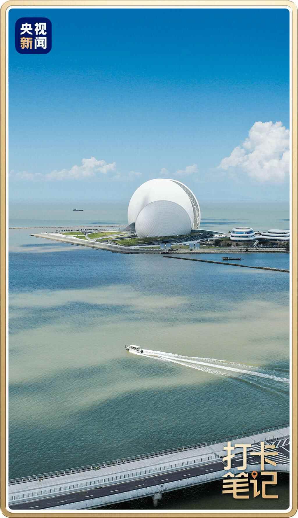 情侣路上必打卡的是珠海大剧院。一大一小两个"贝壳"立于海上,白昼是莹润的珍珠,夜晚则是流转的星河,艺术与自然在这里深情相拥。