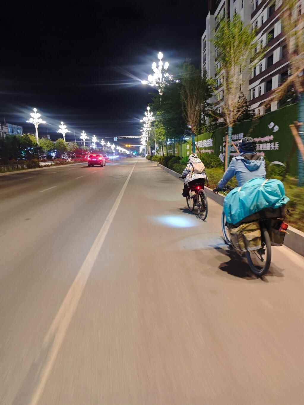 从兰州出发,一路上,码表、导航出现问题。在山道、乡道、国道之间绕来绕去,有时候根本骑不了,只能靠腿走。很多东西都没准备,父子俩没少被雨淋。有一次,李庆胜把时间和路程计划错了,天已经黑了但距离目的地还有十几公里。右边是没有护栏的排水渠,左边是国道的白线,李庆胜这才意识到在国道上是不能夜骑的。