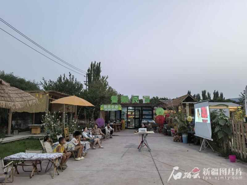 7月22日,香梨小镇正在播放露天电影。石榴云/新疆日报记者 于江艳摄