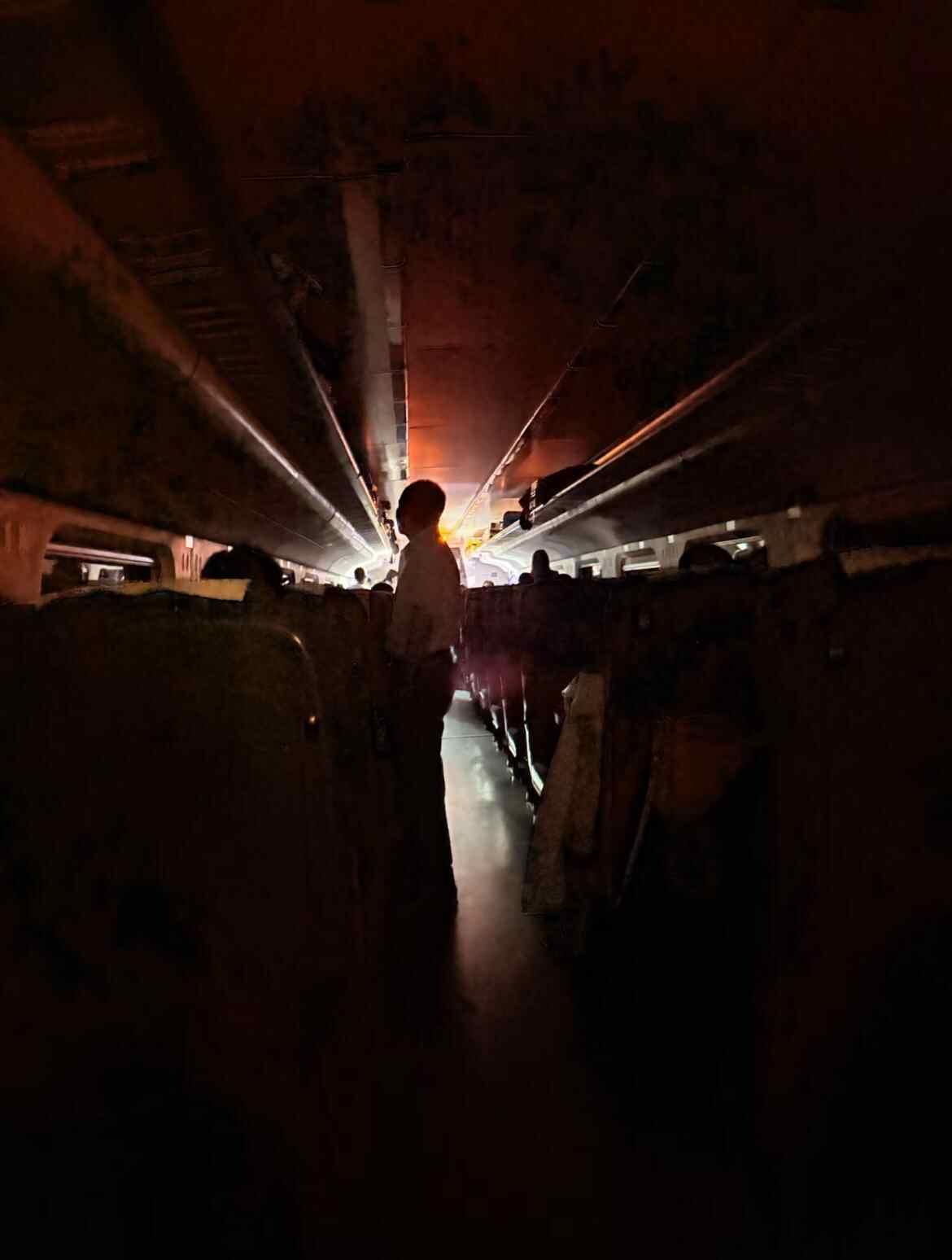 列车员出来安抚大家,说车头坏了。过了一小时又停电了,停了二十分钟,听说是要给车头做全面的检修。期间旁边有很多列车呼啸而过,车厢也有些摇晃,关女士说还是有的可怕。不过车厢里乘客的状态还好,就是小孩多闹腾,空调也没停,列车上也在卖食物,食物卖得很快,一下子就卖完了,大家都挺有囤物资的意识,列车上的工作人员也给一些老弱病残孕的乘客派发物资。