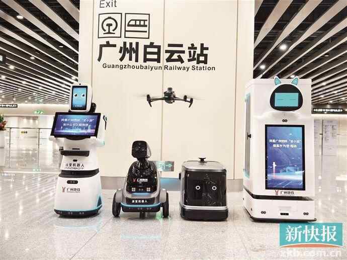 近日,广州地铁在广州白云站启动智能机器人规模化试点应用,集中投放涵盖客运服务、行李载运、巡视服务、清扫清洁、高空巡飞五大功能的智能服务机器人——“羊小迎”“羊小运”“羊小巡”“羊小洁”“羊小飞”。这些机器人也成为地铁广州白云站里最吸睛的“科技明星”。