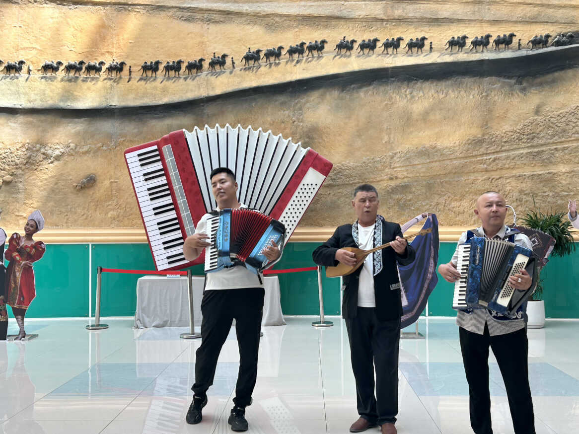 走进2000平方米的展馆,意大利的复古琴键、俄罗斯的巴扬琴、德国百年工艺制作的手风琴依次陈列。其中最珍贵的是一架逾160年历史的纯手工琴,琴身磨损的纹路无声讲述着丝路沿线音乐文化的迁徙。“许多国外收藏家将家族传承的琴捐赠到这里”,塔城手风琴馆讲解员胡欣然介绍到,从最初仅有的1架到如今1200余架,每一架琴背后都有捐赠者与塔城的情感联结每一架琴背后都是对手风琴文化的信任。