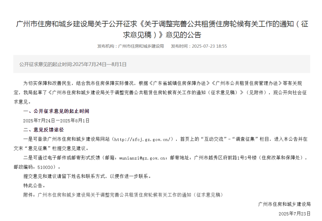 广州市住房和城乡建设局发布通知