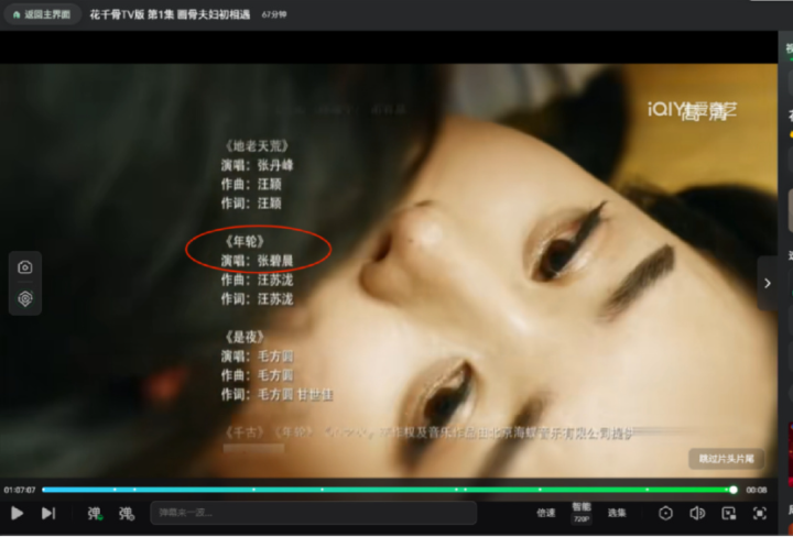 据了解,2015年《花千骨》电视剧插曲《年轮》由张碧晨演唱女生版(6月15日发行),汪苏泷演唱男声版(6月30日发行),两版本同期收录于官方原声带。