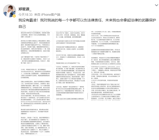 2025年7月25日,前“光合少年”成员郑星源通过微博发文,首次以长文形式正式回应2022年与队友梓渝的冲突事件。他在微博发文:“我没有霸凌!我对我说的每一个字都可以负法律责任!”并称双方因MV站位分歧发生“肢体拉扯”,均受轻微擦伤,强调次日已向梓渝鞠躬道歉。文末他表态:“没有霸凌!未来将用法律武器自证清白”。