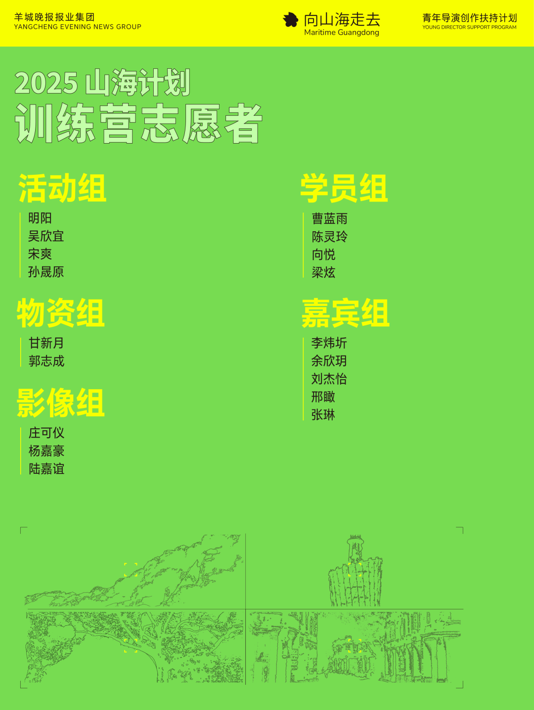 七月,热浪蒸腾的阿那亚九龙湖畔,穿梭着一群“隐形制片人”——他们在烈阳下扛着三脚架疾走,在深夜里核对人员信息,在暴雨中护住器材箱,他们是2025山海训练营的志愿者们。他们或来自山东,或来自江西,或来自浙江,或来自深圳,此刻都汇聚山海训练营;他们或学习美术,或从事翻译,或研究文学,或任职教育,都保有对电影艺术的高度热情。伴随着一场又一场的活动,志愿者们主动走进电影工业流程中,切身演绎电影与人之间的关系,他们的身影本身也构成了山海训练营最真实、最生动的“片场长镜头”。