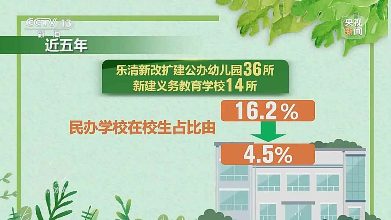 解决随迁子女入学教育这项民生领域的关键小事,让外来务工人员更有获得感、归属感。近五年,乐清新改扩建公办幼儿园36所、新建义务教育学校14所。民办学校在校生占比由原来的16.2%下降到4.5%。