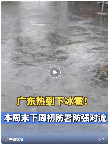 据悉,冰雹的成因,主要和充足的水汽被上升气流带往高空中的冻结层有关。水汽在冻结层冻成小冰晶且重量提升后从高空落下,如果在融化之前接触地面,即能形成冰雹现象。相比冰雹常发的春季,夏季由于地面温度高,冻结层所处的区域将提升,加大了水汽上升后被冻结成冰晶的难度;且同样因为地面温度高,冰雹在下降过程中可能已融化成雨,所以炎热的夏季出现冰雹的概率较低。以广州为例,2016年至2020年,7月仅记录到1次冰雹现象。