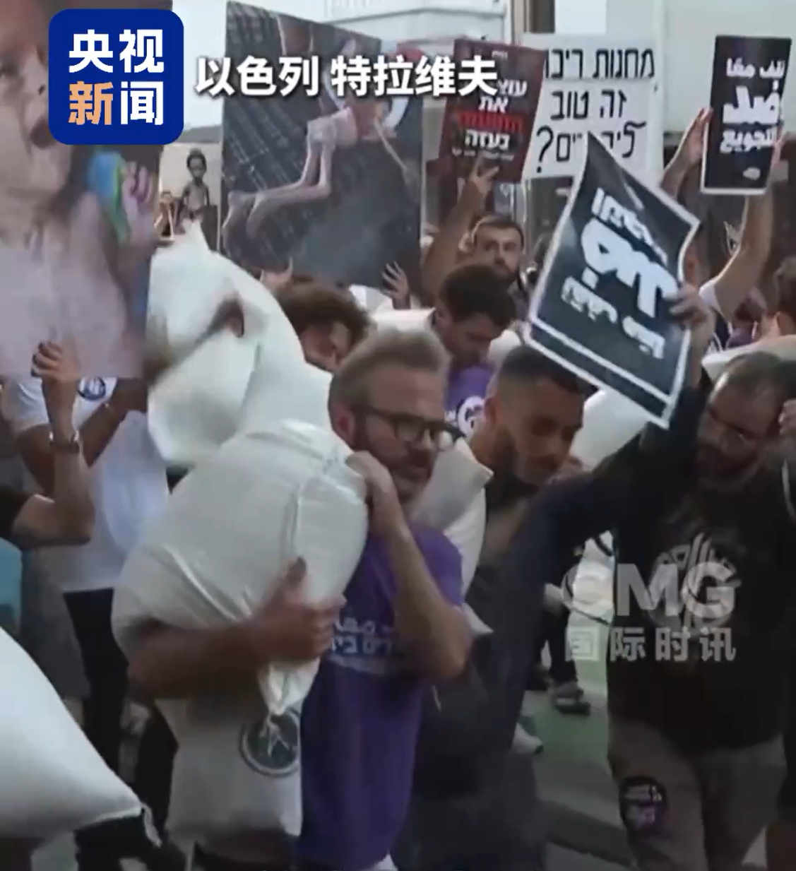 以色列民众扛面粉抗议要求加沙停火