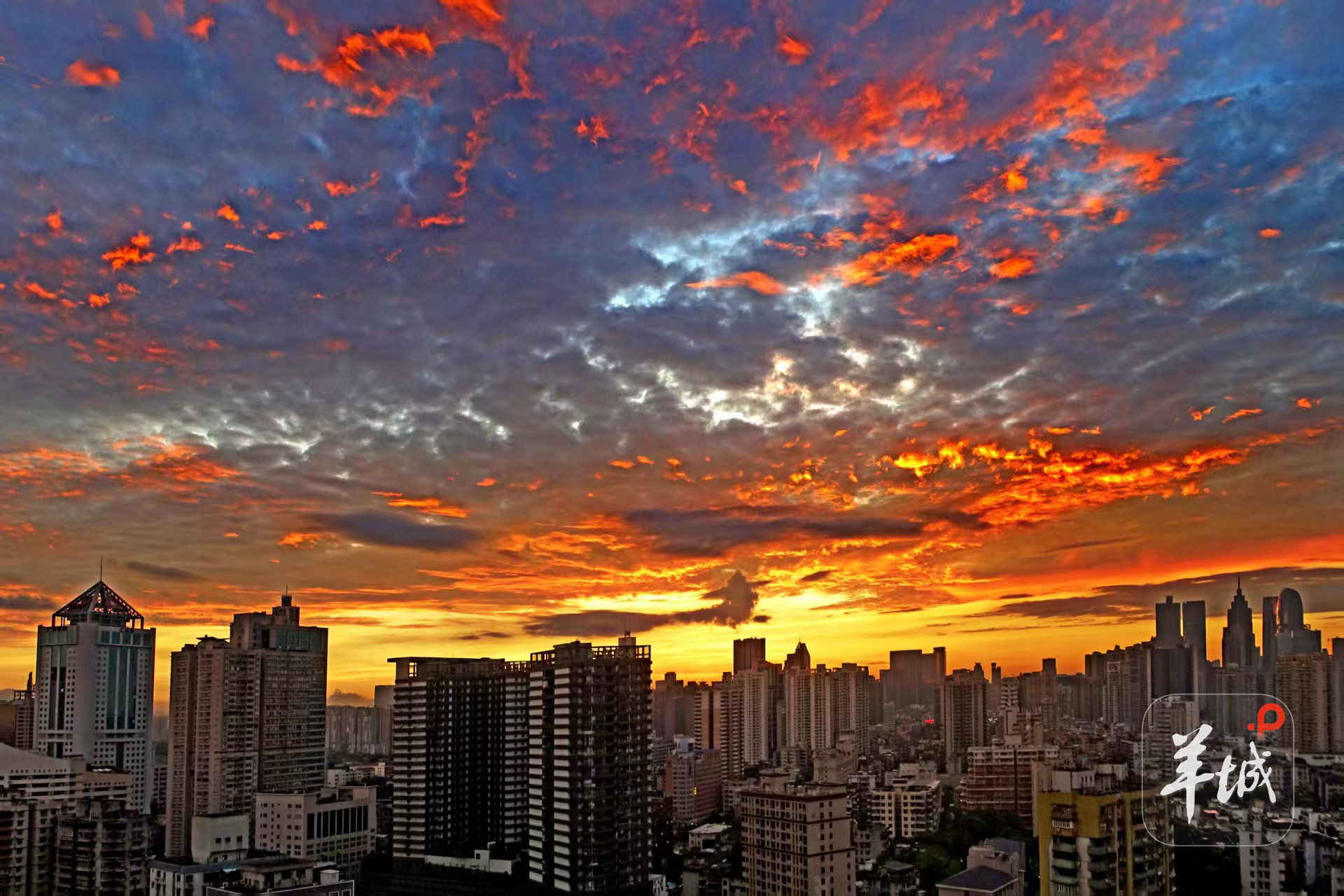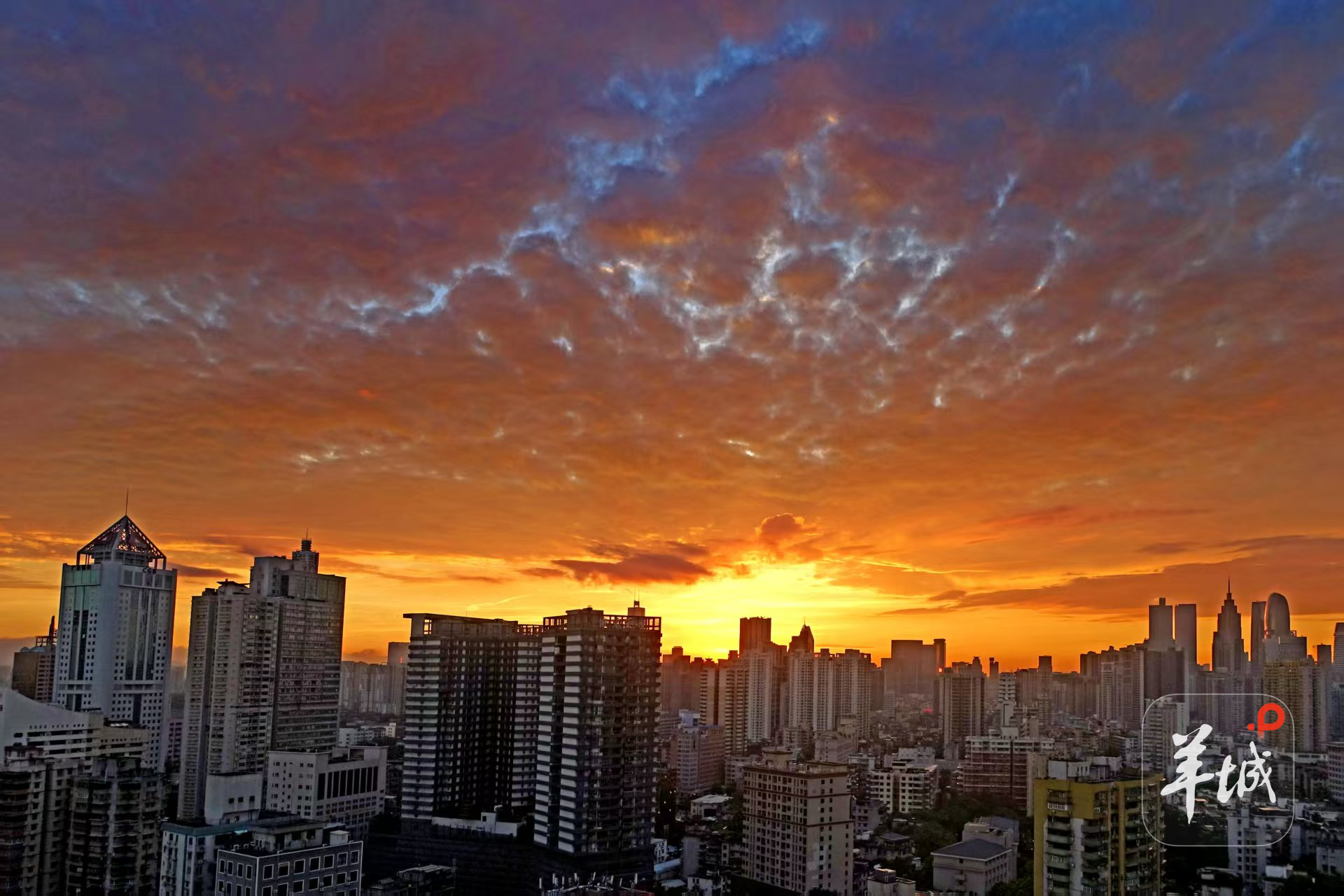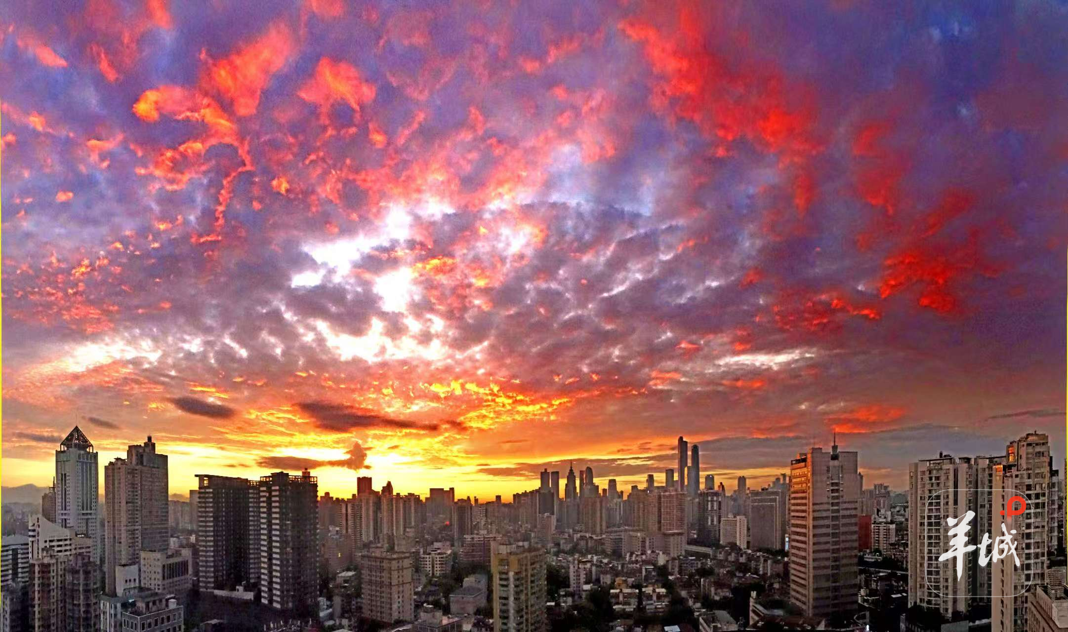 7月24日清晨,广州呈现出火烧云的绝靓景色,不少早起的的市民都惊叹,随手一拍,就是壁纸效果!