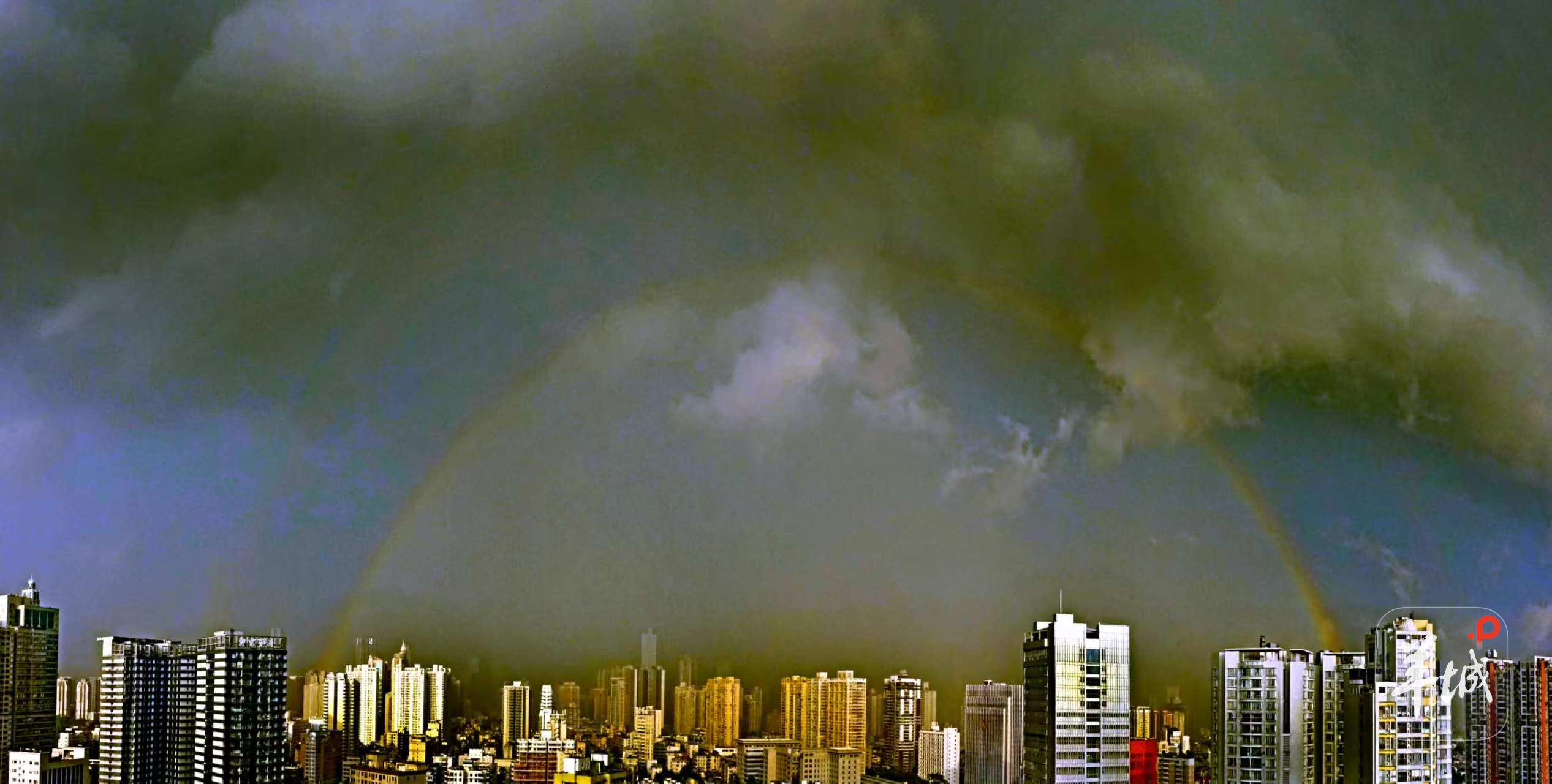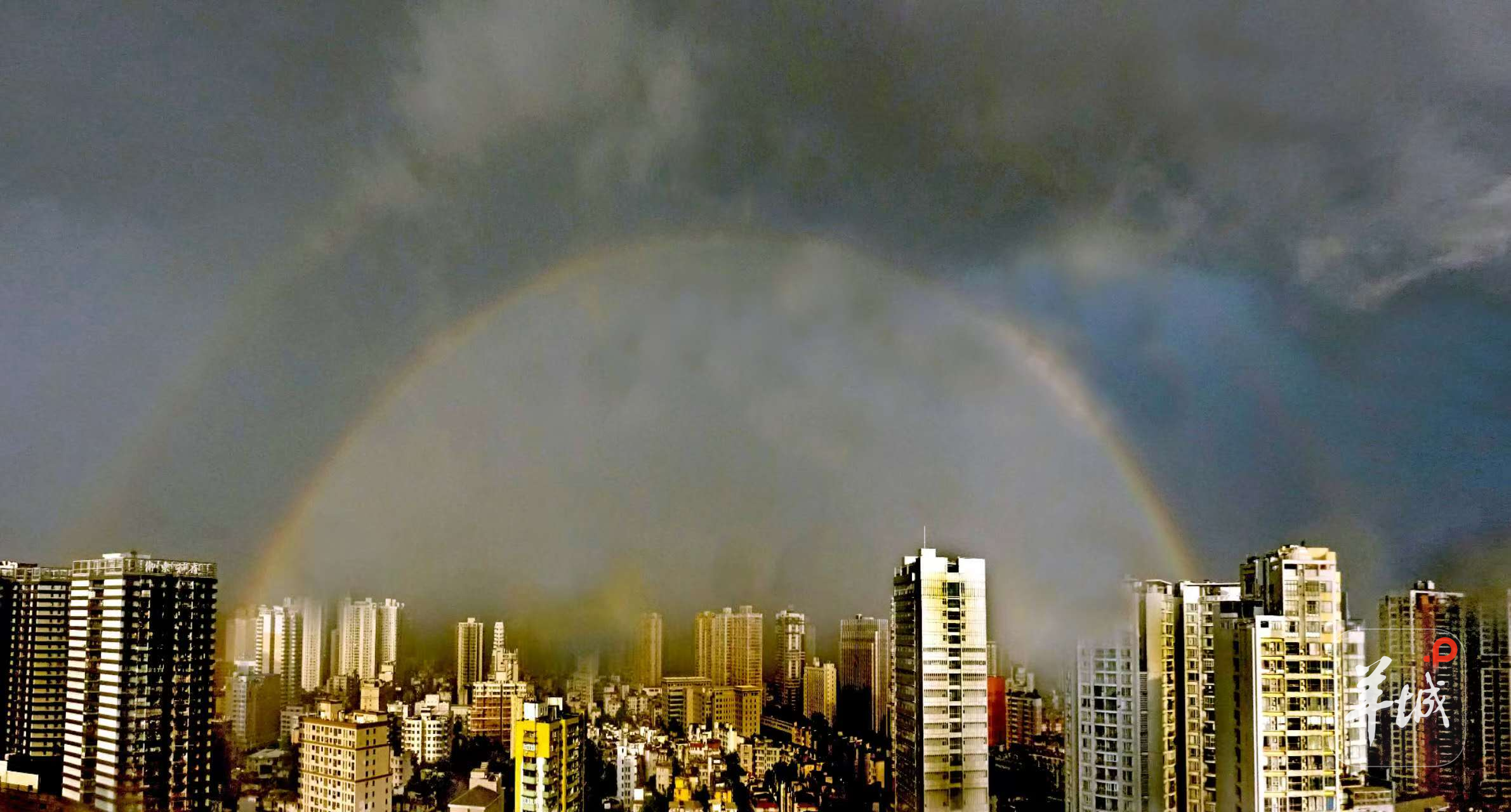 而7月23日傍晚,广州市也呈现出双彩虹的奇观:
