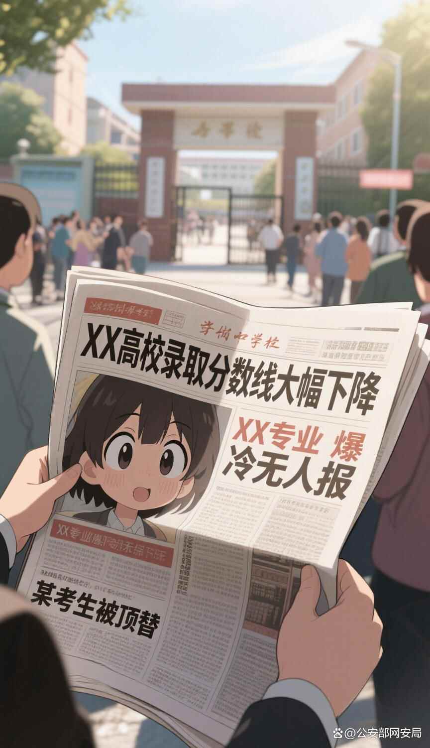 谣言手法: 不法分子编造传播“XX高校录取分数线大幅下降”、“XX专业爆冷无人报”、“某考生被顶替”等不实信息,制造恐慌或误导志愿填报。