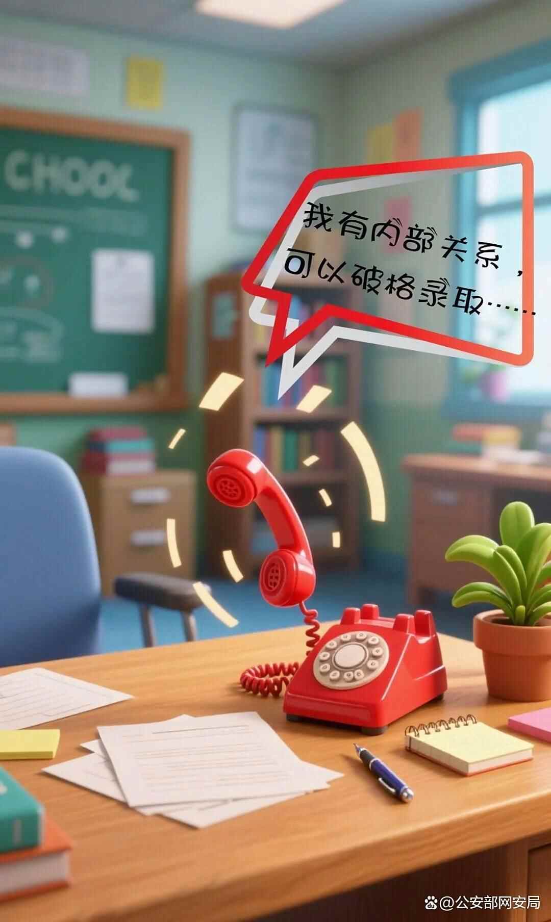 陷阱手法: 接到电话或信息,自称“招生办老师”、“内部人员”或“有特殊关系”,声称可以“破格补录”、“点招录取”或“调剂到更好专业”,但需支付高额“疏通费”。