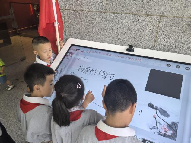 参观完纪念馆后,孩子们在电子留言版上留言(王莉莉/摄)