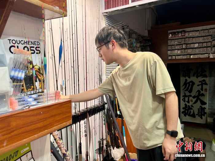 7月17日,顾客在江西省南昌市红谷滩区一渔具店内挑选渔具。朱莹 摄
