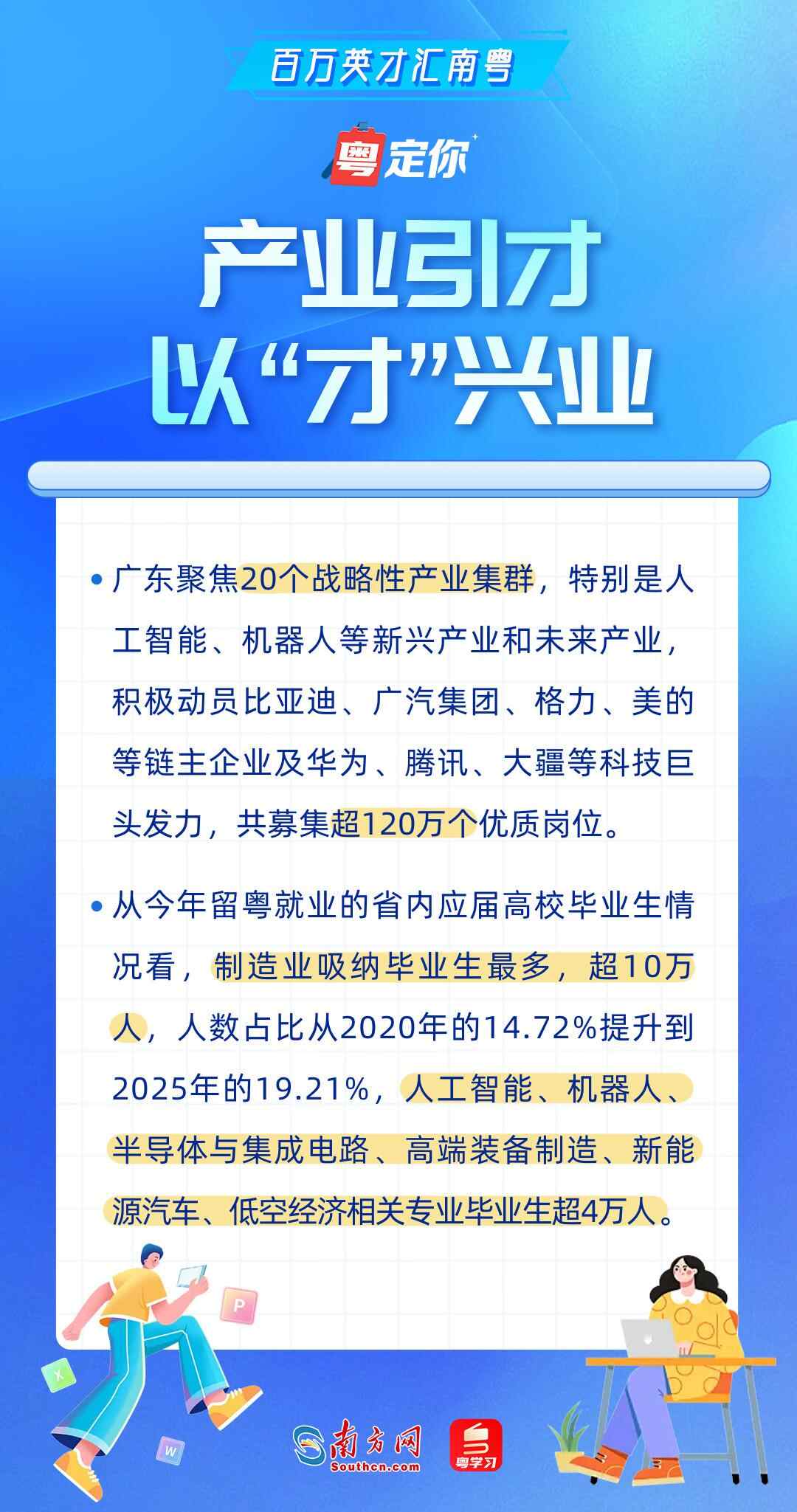 今年初,广东部署实施“百万英才汇南粤”行动计划,截至7月中旬已吸纳超过100万应届高校毕业生留粤来粤就业创业,提前完成全年目标,为广东现代化产业体系建设打造强劲“人才引擎”,充分彰显经济大省挑大梁的责任担当。一组海报看广东超强“人才磁场”↓