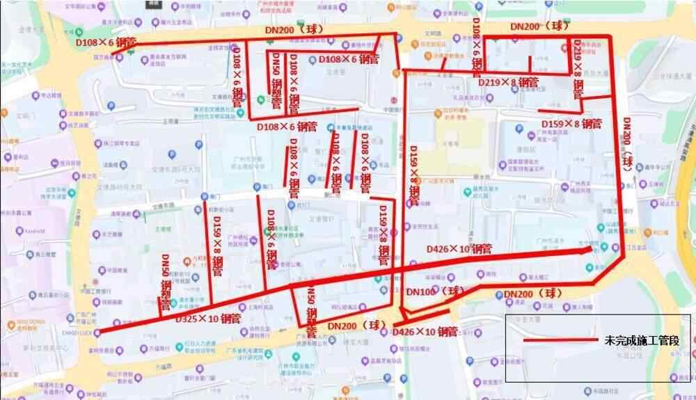 施工涉及文明路、文德六巷、文德七巷、德政中路、肖巷、越秀南路、万福路、清水濠、聚仁坊、定安里、文德东路、槐花前街、六和新街、玉带濠及周边巷道。