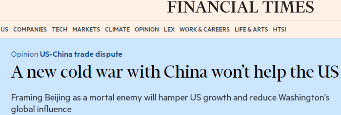 文章最后说,如果将中国看作合作伙伴而不是对手,上述情况就都不会发生。美国亟需认清的是,不要再沉溺于零和博弈,而是要探索与中国共同发展之道。