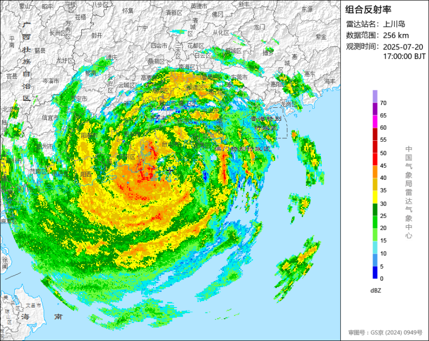 根据广东省气象部门7月20日6时最新预计,今年第6号台风“韦帕”较大可能在珠海到湛江沿海地区登陆。截至6时,广东多地已经发布最高等级的台风红色预警信号,多个气象站点录得12级的风力。从最新雷达影像图上看,“韦帕”拥有相对清晰的眼区,其风眼周边的螺旋雨带,在20日早晨正在影响广东。