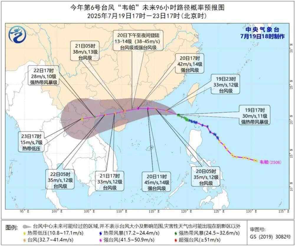 中央气象台7月19日18时对“韦帕”的路径和强度预报