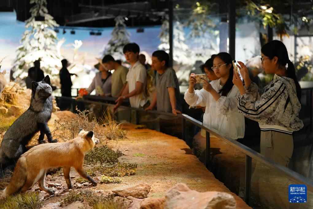 7月15日,游客在澄江化石地世界自然遗产博物馆参观动物标本。