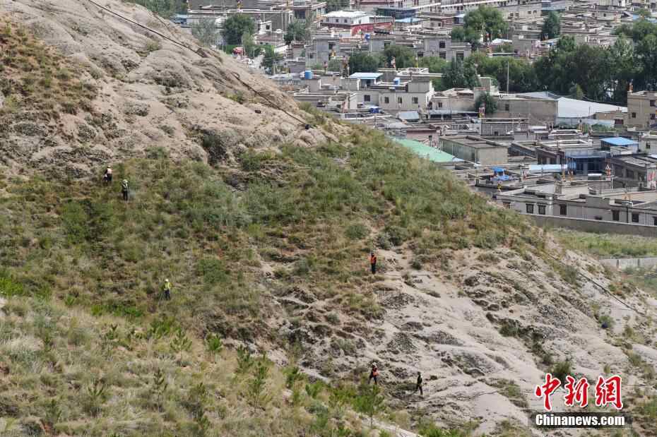 7月16日,在西藏拉萨娘热沟,工作人员在维护南北山绿化工程的植被。据了解,拉萨南北山绿化工程于2021年启动,东起墨竹工卡县尼玛江热乡,西至曲水县茶巴拉乡,东西绵延近200公里,计划完成国土绿化面积206.72万亩,助力拉萨成为生态宜居的高原首府城市。中新社记者 张祥毅 摄