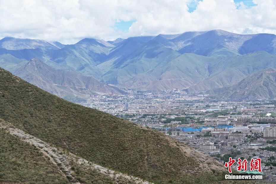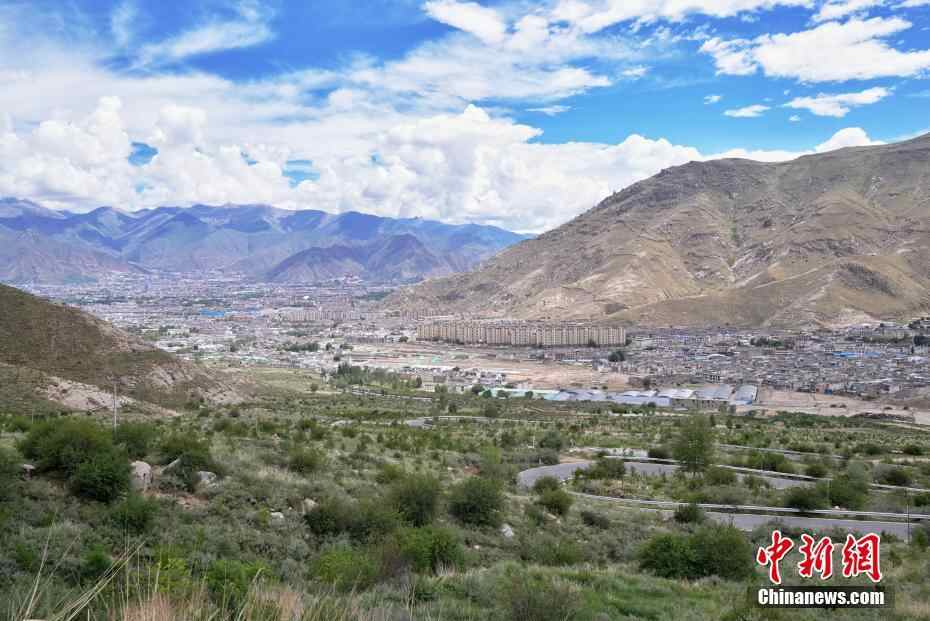 7月16日,从西藏拉萨娘热沟远眺,南北山的绿色植被环抱拉萨城区。据了解,拉萨南北山绿化工程于2021年启动,东起墨竹工卡县尼玛江热乡,西至曲水县茶巴拉乡,东西绵延近200公里,计划完成国土绿化面积206.72万亩,助力拉萨成为生态宜居的高原首府城市。中新社记者 张祥毅 摄