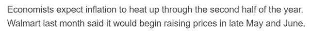 有经济学家指出,由于多数企业在白宫宣布“对等关税”前抢先进口货物增加了库存,5月物价压力尚不明显。但随着库存减少,通胀会从6月开始升温,且一直持续到今年下半年。