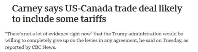 正如加拿大总理卡尼15日所说,美国总统似乎痴迷于关税,任何与美国达成的贸易协议都可能包括接受对出口征收一定比例的关税。目前“没有太多证据”表明美国愿意在不加征部分关税的情况下达成协议。