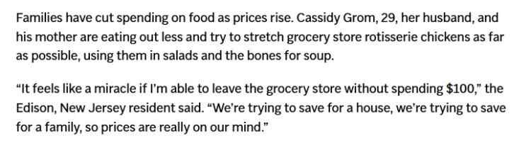 实际上,随着物价上涨,普通美国家庭已纷纷削减了食品开支。