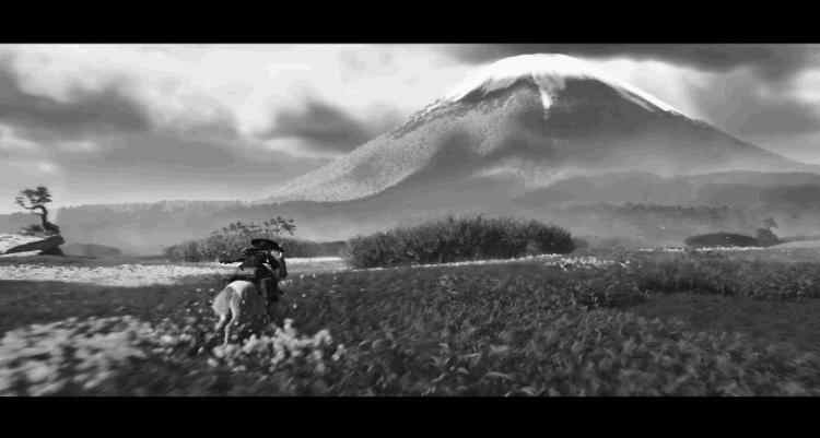 说到视听体验,《羊蹄山之魂》依旧保留了前作的“黑泽明模式”,整个游戏画面会带上一层黑白滤镜的那种。