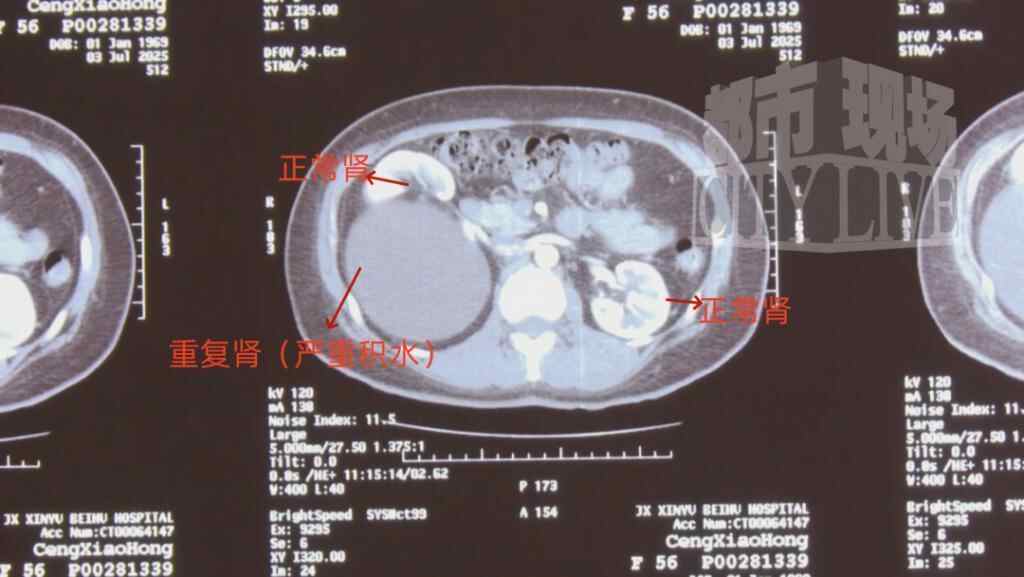 CT 检查显示,郑女士的的体内竟然有“三个肾”,医学称之为重复肾。